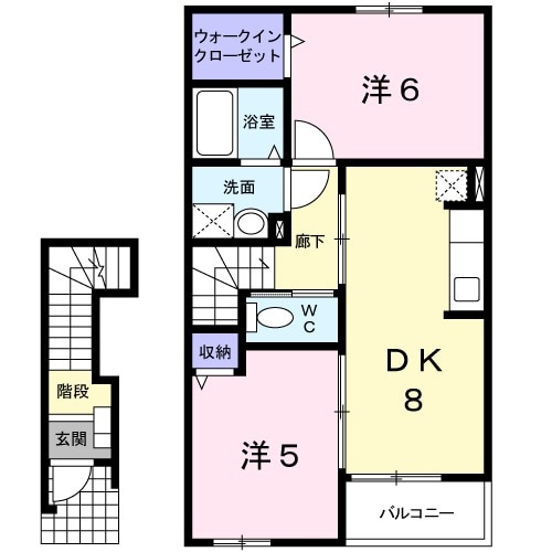 - 間取り3K(1F/洋6×3、2F/洋6、和6×2)