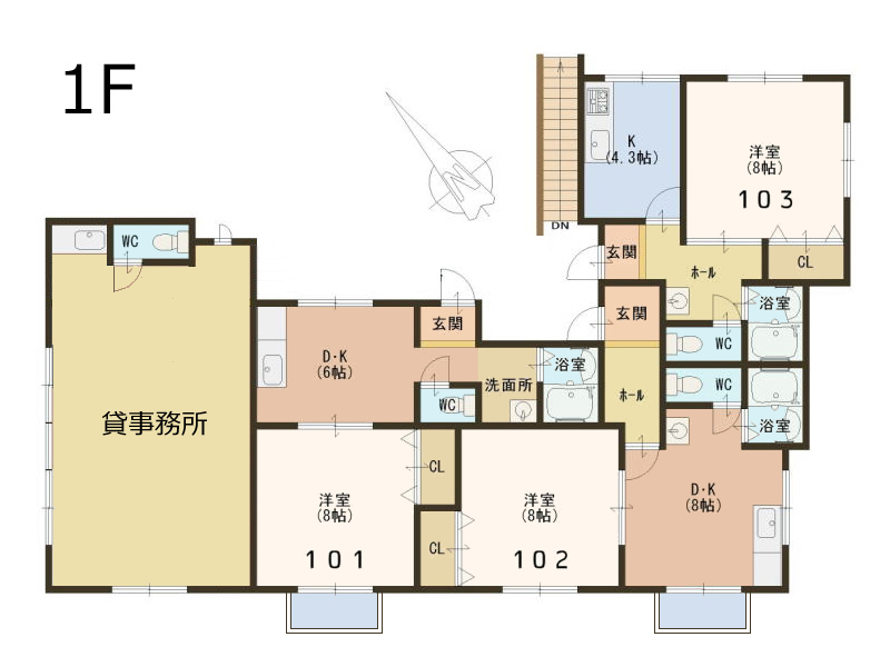 - 間取り1K( 洋6帖 又は 洋8帖)